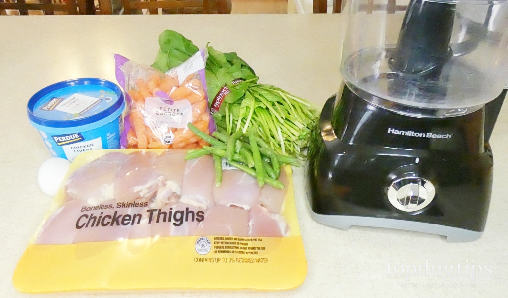 I like putting everything in the food processor. It's simple for me and makes this food easy for any dog to eat. If your dog has dental health problems, he'll have no problem consuming this cheap raw dog food recipe.