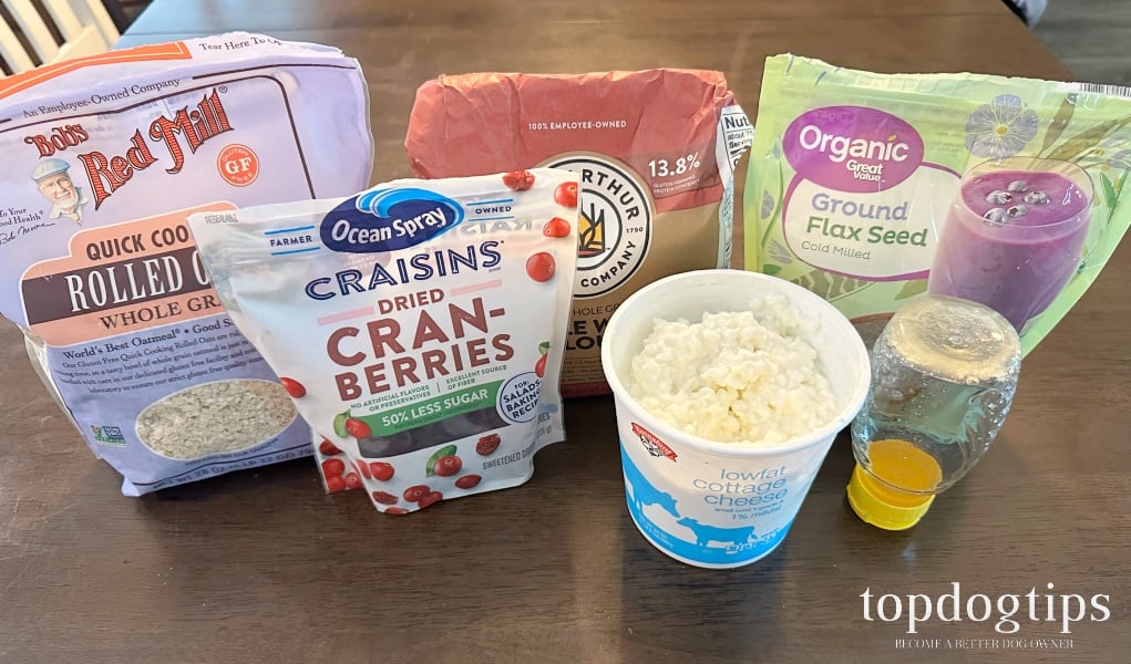 If your dog has allergies, you can substitute rice flour, coconut flour or any other type of flour that is suitable for his digestion. You could also substitute quinoa flakes in place of the oats, if need be.