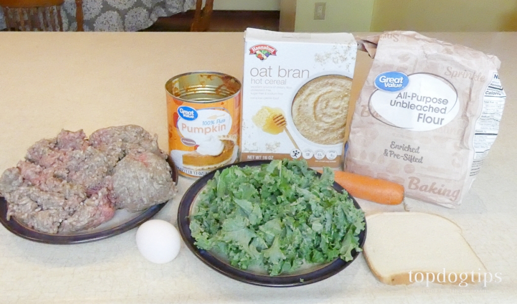 Divide the mixture into meatballs appropriately sized for your dog. Roll the meatballs in the flour, and shake off the excess. Place the meatballs on a baking sheet, and bake in the 400˚ oven for 25 minutes.