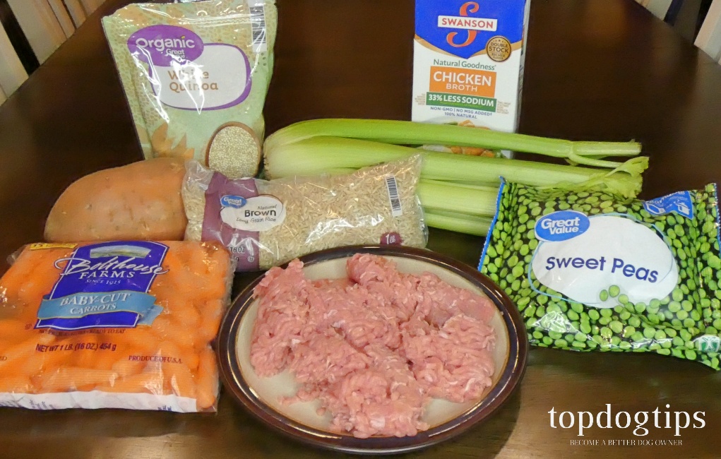 The centerpiece of a Thanksgiving table is the turkey, of course. You can certainly use leftovers to make this recipe, or you could use lean ground turkey instead. Turkey skin is very high in fat, which could upset your pooch's tummy and cause diarrhea. If you choose to use leftovers from your Thanksgiving dinner, make sure to use white meat (which is lower in fat than dark meat) and remove the skin.