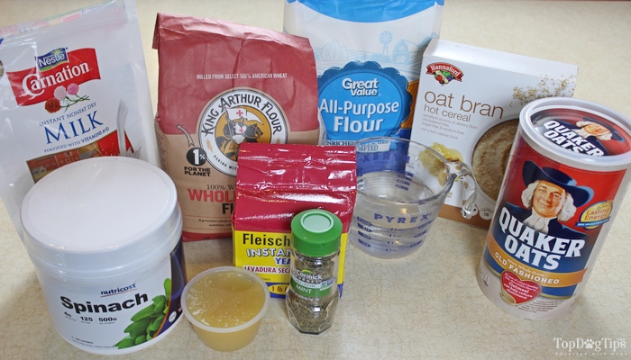 The easiest way to make the dough for these dog treats is to use a bread machine. If you don't have a bread machine, you can just mix it by hand.